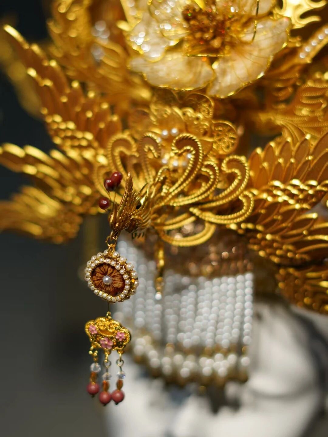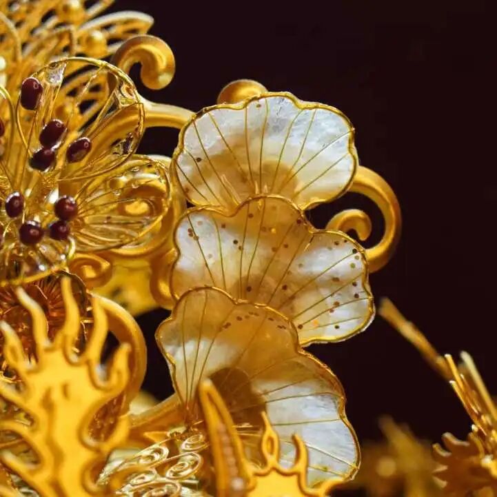 “中药之冠”由扬子江联合文化创作博主共同打造,设计灵感源自传统龙凤冠,既承载了“龙凤呈祥”“健康长寿”的美好寓意,又实现了对中药材的艺术化再造。制作团队从上百种药材中精选20余味,用特殊工艺保留药材天然质感与清雅药香:木蝴蝶被塑造成层叠的牡丹花瓣,金银花与红豆搭配成精巧花蕊,冠冕流苏则由多味药材研磨制成的香珠串联而成,成为可观赏、可感知的中医药文化新载体。